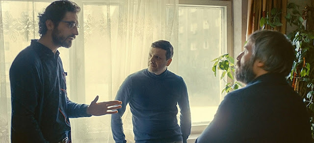 La casi totalidad del relato se desarrolla en el interior de ese piso en donde asisten personas de ideologías diferentes, y una pequeña parte al inicio y al final tiene lugar en las calles de Bucarest o en el interior de un vehículo. Los primeros temas de debate surgen en ese recorrido en coche de un matrimonio que van discutiendo sobre lo que les espera en esa reunión, y que tiene como protagonista a Lary y Sandra.