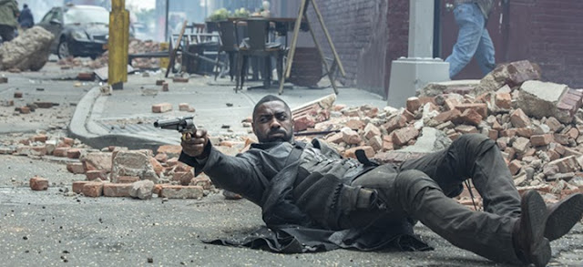 Lo que más me interesa es la historia personal de Jake, el niño que sueña con esa torre oscura, en esa vida diaria que vemos en la parte inicial, y sobre todo esas escenas que se desarrollan en un paisaje que recuerda a Monument Valley, en donde el niño se encuentra junto al pistolero Roland, una de las personas que ha visto en sus sueños. Idris Elba es ese hombre enigmático que intenta luchar por mantener a salvo la torre oscura, y que va en busca de Walter, para vengarse del malo de la película por un asunto que sucede en la parte inicial. Curiosamente coinciden en esa escena clave, que vemos en el sueño de Jake, dos actores de color que se hicieron populares por series de televisión, Idris Elba el " Stringer " Bell de " The Wire ( 2002-2008 ) " y Dennis Haysbert el presidente David Palmer de " 24 ( 2001-2010 ) ".